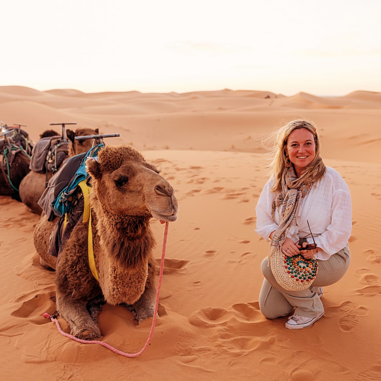 Please prepare a small backpack with essentials for the camping and your personal belongings. Do not forget sunglasses, a scarf, a hat, comfortable walking shoes and in winter also warm sleeping clothes. For the camel ride we recommend to wear jeans or long trousers.