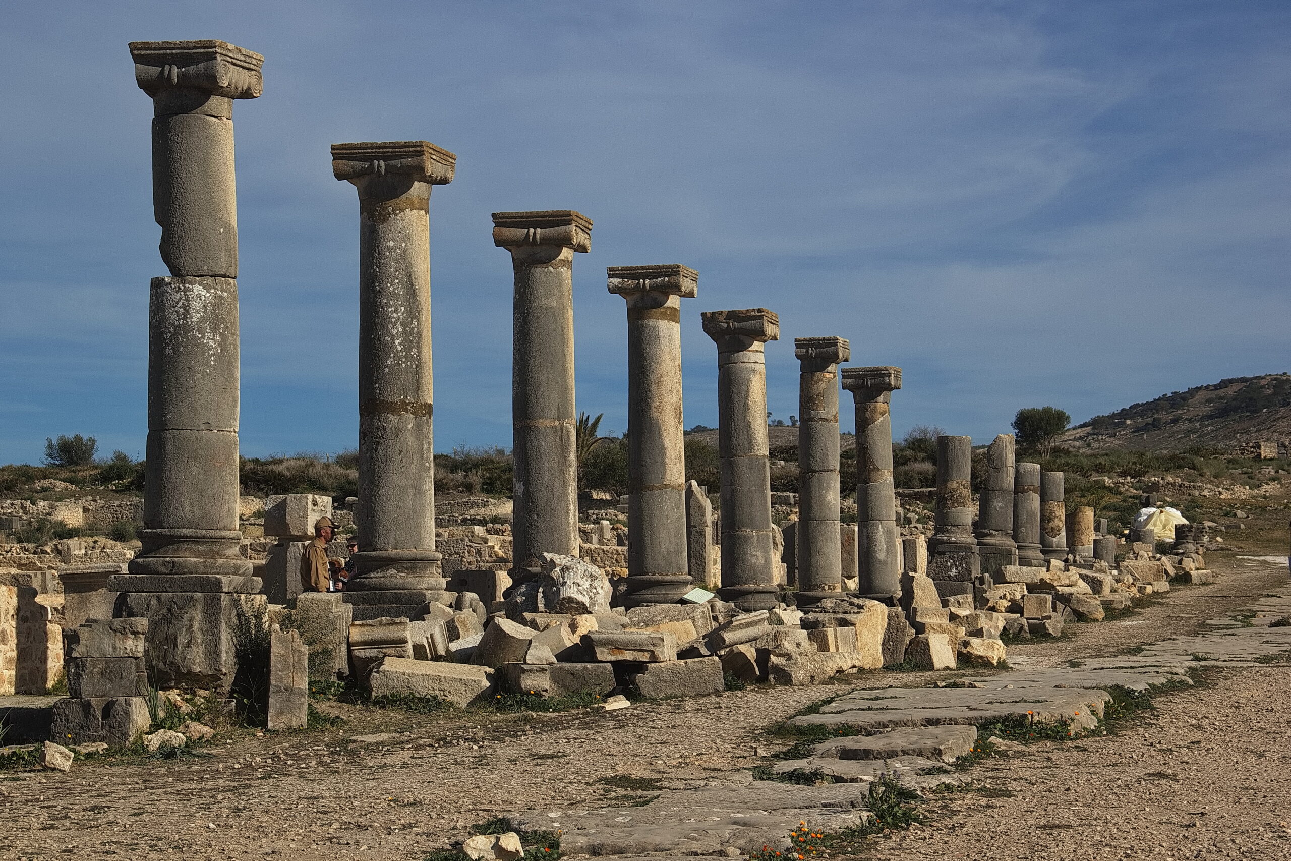 Our Moroccan adventure kicks off with a delicious breakfast at your riad, fueling you for a scenic journey through charming Rif villages. As we travel through the breathtaking Moroccan countryside, we’ll arrive at Volubilis, a once-grand Roman city frozen in time.